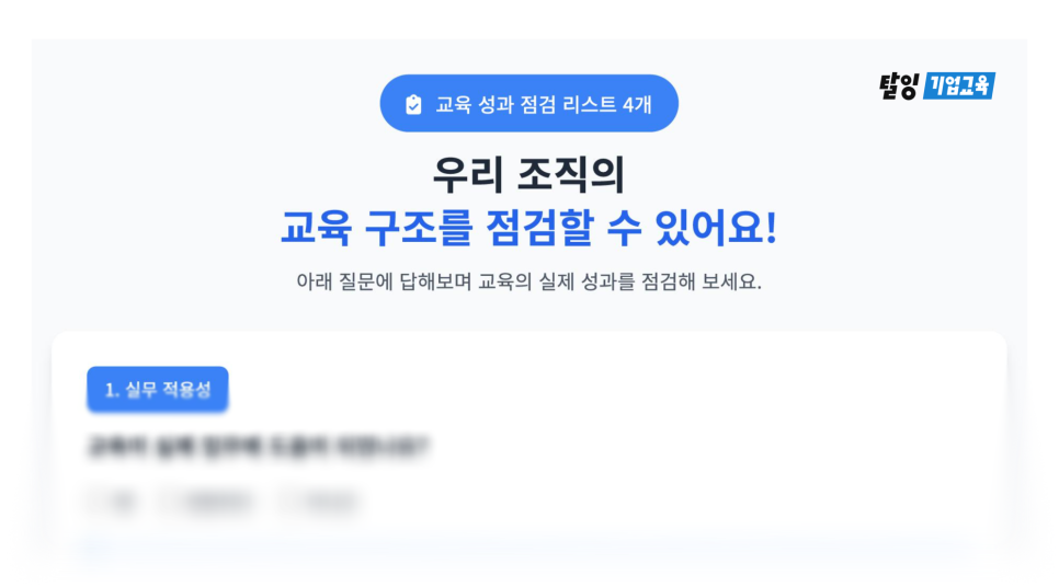 단지 ‘좋은 교육’보다 ‘성과를 만드는 교육’이 필요하다면, 지금이 점검하고 새로 설계할 타이밍입니다.